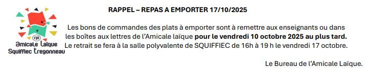 RAPPEL – REPAS A EMPORTER 17/10/2025